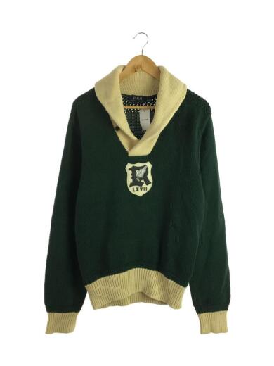 セーター(厚手)/M/コットン/グリーン/無地/ウィングフットエンブレム/ショールカラーセーター