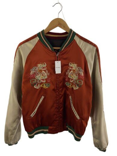 スカジャン/M/ポリエステル/オレンジ/m18333/龍/虎/リバーシブル/刺繍