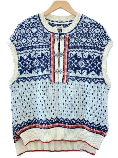 ニットベスト(厚手)/M/ウール/NVY/総柄/11-214-019