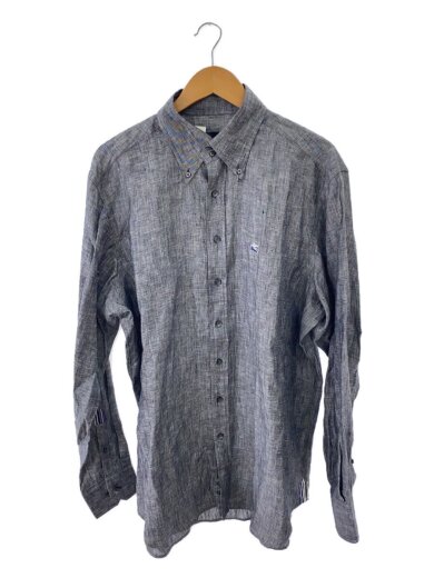 ボタンダウン/ロゴ刺繍/長袖シャツ/44/リネン/GRY//