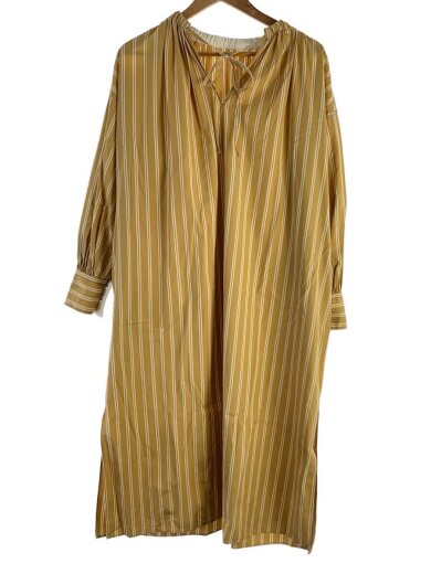 コットンストライプ ネックギャザーワンピース/長袖ワンピース/34/コットン/11-06-02-06233