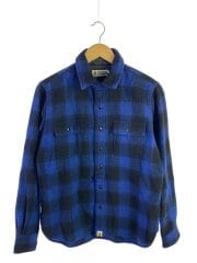 ネルシャツ/S/ウール/BLU/チェック/チンスト