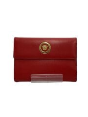 3つ折り財布/レザー/RED/無地/レディース