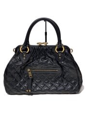 キルティングハンドバッグ/がま口/ハンドバッグ/レザー/BLK