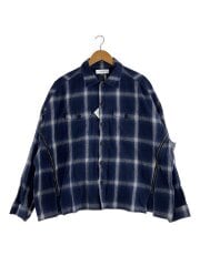 長袖シャツ/3/コットン/BLU/オンブレCK/CHG-SH-M05/オーバーサイズフリンジチェックシャツ