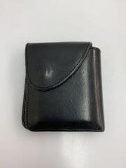 Flap Wallet/3つ折り財布/レザー/BLK/メンズ