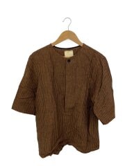 半袖シャツ/S/リネン/BRW/ストライプ