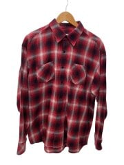 長袖シャツ/L/コットン/RED/オンブレCK