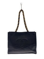 マトラッセチェーンショルダートートバッグ/レザー/ネイビー/ シャネル