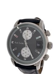 クォーツ腕時計/アナログ/レザー/BLK/BLK/SS/P10031
