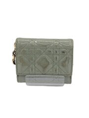 3つ折り財布/エナメル/GRY/無地/レディース/Lady Dior Lotus