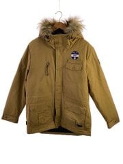 ダウンジャケット/L/ナイロン/キャメル/フード付き/ファー付き/ジップアップ/フルジップ