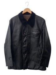 襟ボア付属/USA製/レザージャケット・ブルゾン/38/牛革/BLK/無地/613JSS