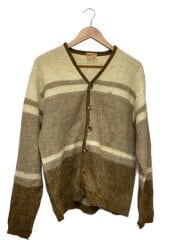 60s/モヘアカーディガン/L/モヘア/BEG/vintage/ボーダー/ヴィンテージ