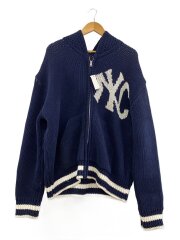 NYC RIBBED KNIT HOODIE ZIP-UP/L/コットン/NVY