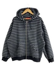 ジップパーカー/L/コットン/BLK/ボーダー/brushed zip up hooded/23AW
