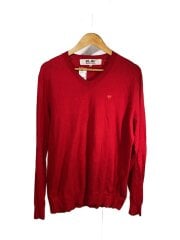 ニット・セーター(薄手)/XL/コットン/RED/無地/AZ-N052