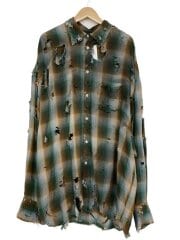 60s頃/Vintage/長袖シャツ/2/--/GRN/オンブレCK/カスリ柄