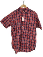 半袖シャツ/M/コットン/RED/チェック/90s/USA製