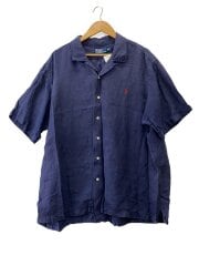 90s/リネンシルク/ヘリンボーン/オープンカラー半袖シャツ/開襟シャツ/SIZE:XXL/ネイビー