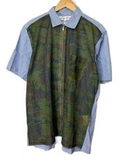 メッシュジップアップ半袖シャツ/M/コットン/GRN/カモフラ/S10118