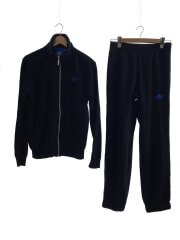 セットアップ/トラックジャケット/トラックパンツ/L:M/トレフォイル/コットン/ブラック