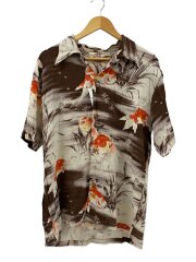 首回り汚れ有/アロハシャツ/L/レーヨン/BRW/総柄/SS32164/金魚