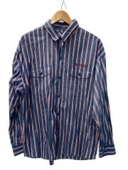 長袖シャツ/L/コットン/NVY/ストライプ