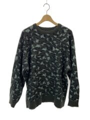 スカルニットカーディガン/M/ウール/BLK/黒/総柄