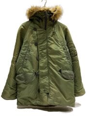 フライトジャケット/M/ポリエステル/GRN/無地/ナイロン/ファー/