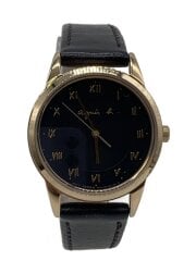クォーツ腕時計/アナログ/レザー/BLK/BRW