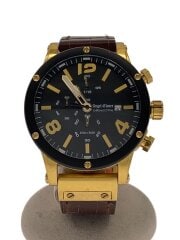 クォーツ腕時計/アナログ/レザー/BLK/BRW/EVC46YBK-BW//