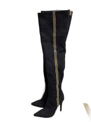 ラインストーン/ロングブーツ/--/BLK
