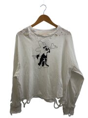 長袖Tシャツ/ダメージ/プリント/コットン/WHT