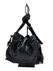 nucle/巾着型ショルダーバッグ/フェイクレザー/BLK/無地