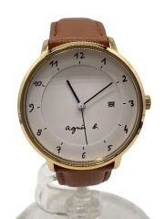 クォーツ腕時計/アナログ/レザー/WHT/VJ12-KY40