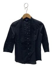 バンドカラーフリル7分袖ブラウス/38/BLK/FE055-511-09