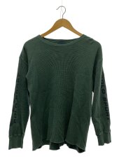 90s/サーマルニット/袖プリント/M/コットン/GRN