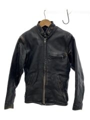 ボアライナー付き/USA製/スレ有/シングルライダースジャケット/32/レザー/BLK/無地