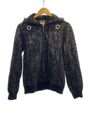 ジップパーカー/S/コットン/BLK/総柄/dd-t010