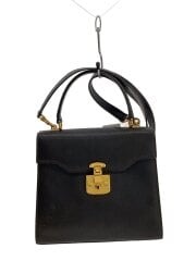 角擦れあり/金属剥がれ一部/ハンドバッグ/レザー/BLK/000・2026・0258//