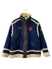 長野オリンピック/ボアジャケット/L/ポリエステル/NVY/レザー部分劣化あり/袖汚れ