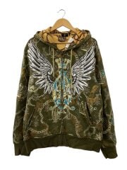 ジップパーカー/XL/コットン/KHK/総柄/009-01649