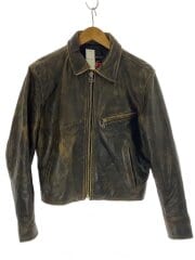 シングルライダースジャケット/--/レザー/BRW/無地